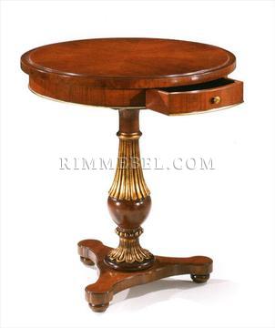 Круглая подставка с ящиком. Декорирована резными элементами ручной работы. Возможны различные варианты отделки.