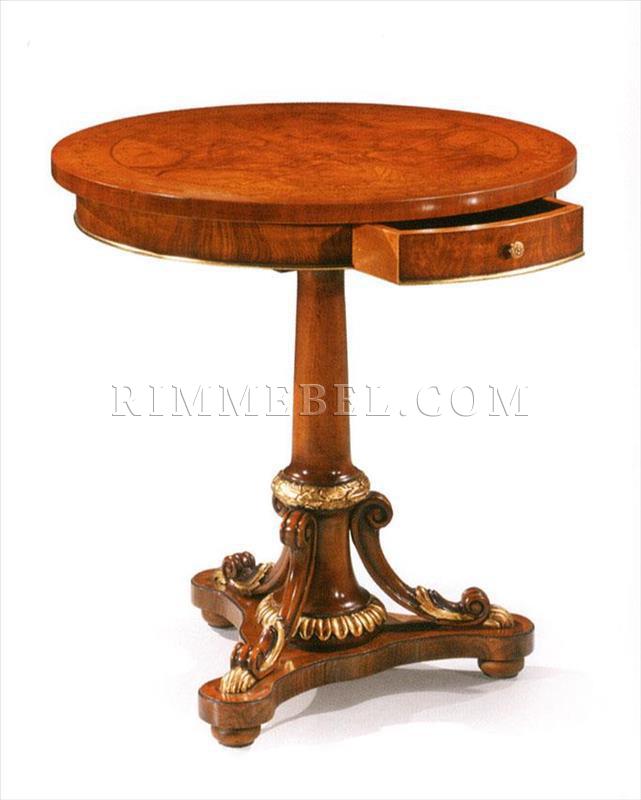 Круглая подставка с ящиком. Декорирована резными элементами ручной работы. Возможны различные варианты отделки.