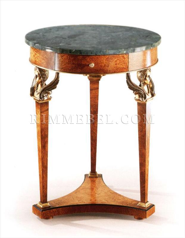 Круглая подставка с ящиком. Столешница выполнена из мрамора, также можно выполнить из дерева. Декорирована резными элементами ручной работы. Возможны различные варианты отделки и мрамора.