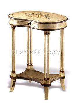 Овальная подставка с 1-м ящиком и полкой. Роспись ручной работы с использованием темпорных красок, порошков и методов состаривания, которые использовались еще во времена флорентийского Ренессанса. Возможны другие варианты отделки.