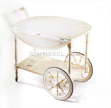 Сервировочный столик с полкой на колесиках, раскладная столешница. Декорирован резными элементами ручной работы. Возможны различные варианты отделки.