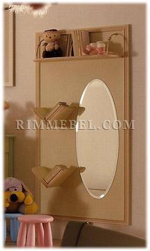Панель с зеркалом и V-образными полками для книг. Возможны разные варианты цвета.