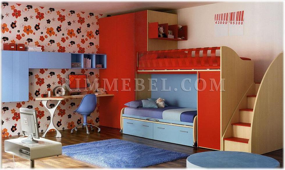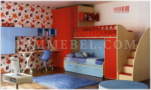 Пример композиции для детской комнаты. В композицию входят две кровати, стенка, письменный стол. Возможны различные варианты отделки, виды ручек и модификации