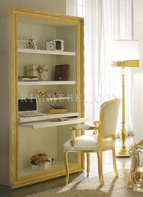 Книжный шкаф с нишей для компьютера и выдвижной подставкой. Декорирована резными элементами. Возможны другие варианты отделки.