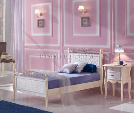 Односпальная кровать с жестким изголовьем и изножьем. Возможны другие цветовые варианты отделки.