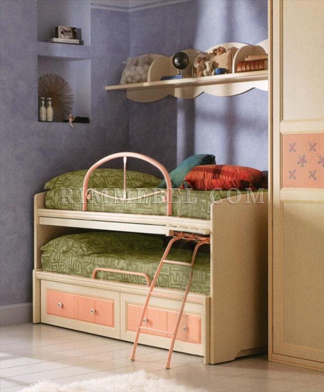 Двухярусная кровать с выдвижным 2-м спальным местом, лесенкой и письменным столом. Выдвижная кровать с 2-мя ящиками. Возможны другие варианты отделки.