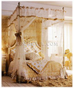 Детская односпальная кровать с балдахином, высокое мягкое изголовье. Декорирована резьбой. Возможны различные варианты отделки и обивки. Возможен вариант кровати с контейнером.