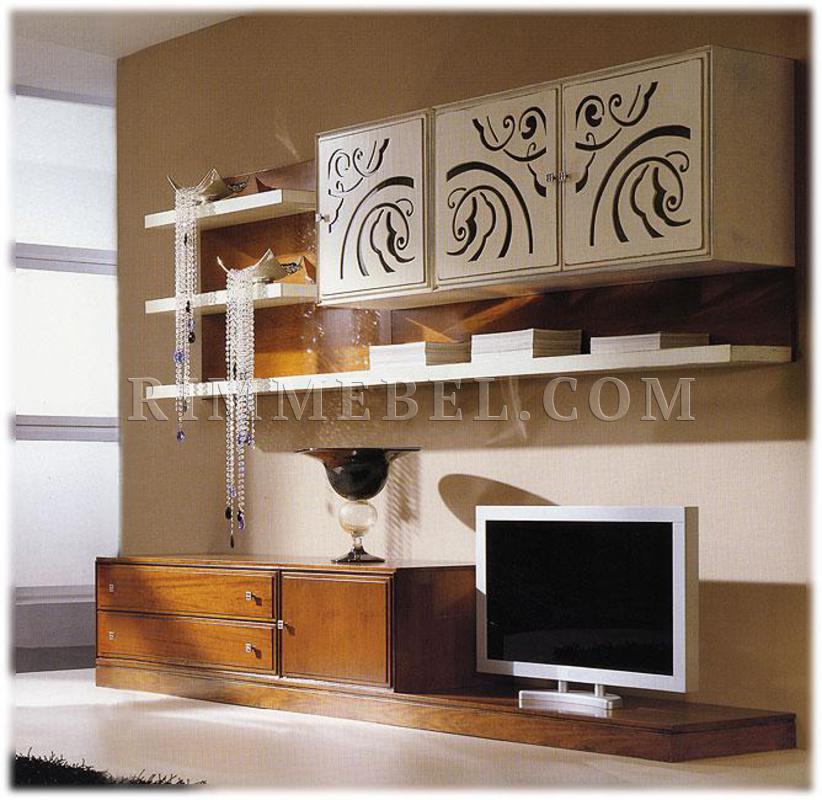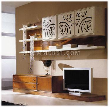 Модульная стенка. В композицию входят: тумба под TV с 2-мя ящикaми, открытые полки, 3-х дверный подвесной шкаф. Ручки можно выполнить с кристаллами Swarovski. Возможны различные варианты отделки.