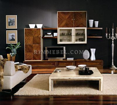 Стенка с открытыми и закрытыми полками, тумбой с 3-мя ящиками. Возможны различные варианты отделки.