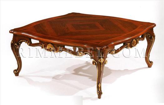 Квадратный журнальный стол. Столешница выполнена из дерева, также можно выполнить из мрамора. Декорирован резными элементами ручной работы. Возможны различные варианты отделки и мрамора.