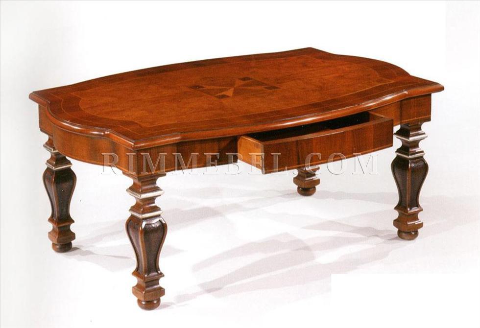 Журнальный стол с ящиком. Декорирован резными элементами ручной работы. Возможны различные варианты отделки и мрамора.