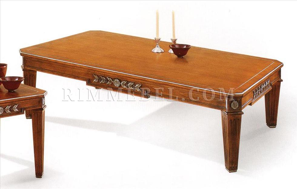 Прямоугольный журнальный стол. Столешница выполнена из дерева, также можно выполнить из мрамора или стекла. Декорирован резными элементами ручной работы. Возможны различные варианты отделки и мрамора.