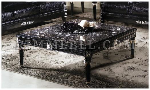 Журнальный столик, столешница выполнена из мрамора (возможны различные варианты мрамора), а также возможен вариант деревянной или стеклянной столешницы. Декорирован резьбой. Ручная работа. Возможны различные варианты отделки (красное дерево, махагон, охра, декапе и т.д.).