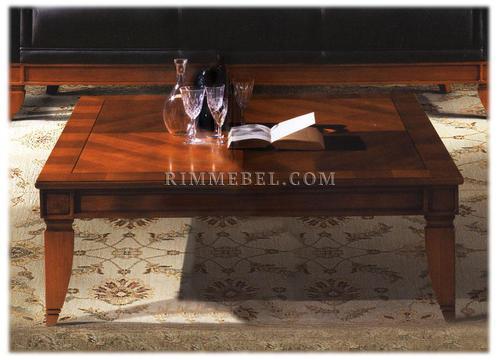 Журнальный столик, столешница может быть выполнена из стекла или отделке из кожи. Возможны различные варианты отделки (красное дерево, махагон, охра, декапе и т.д.).