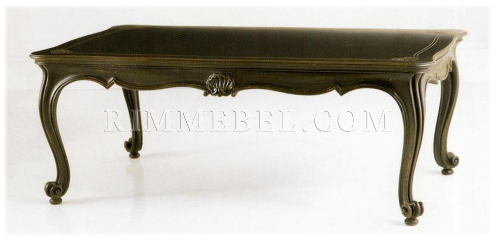 Журнальный столик, столешница может быть выполнена из стекла. Декорирован резьбой. Возможны различные варианты отделки.