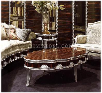 Фигурный журнальный стол. Декорирован резными элементами. Возможны другие варианты отделки.