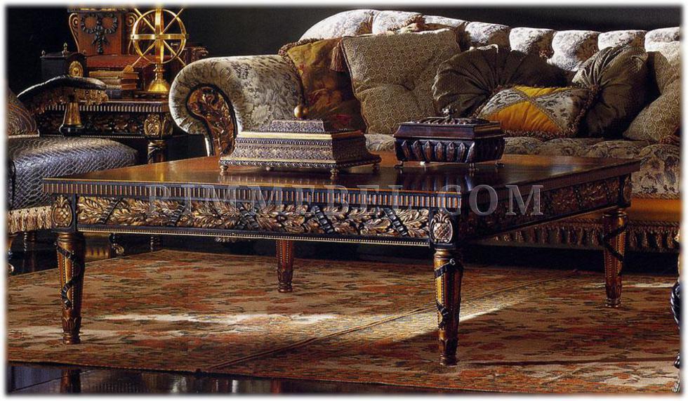 Журнальный столик, декорированный резьбой. Инкрустированный топ. Возможны другие варианты отделки, в том числе вариант столика с мраморным топом
