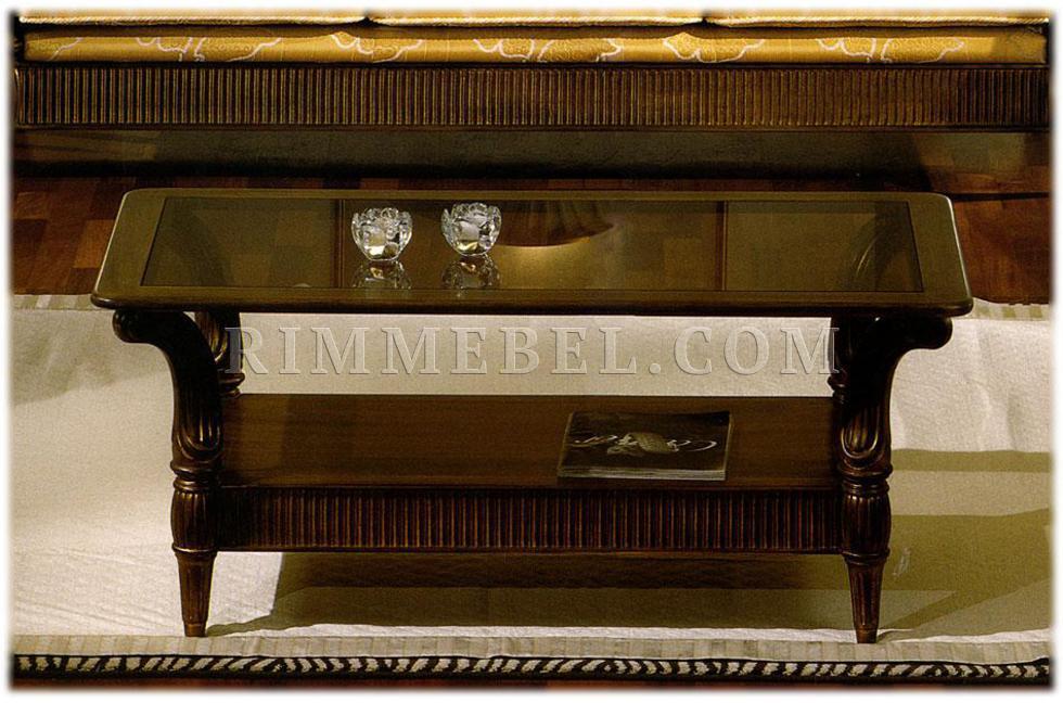 Прямоугольный журнальный стол с полкой. Столешница выполнена из стекла.