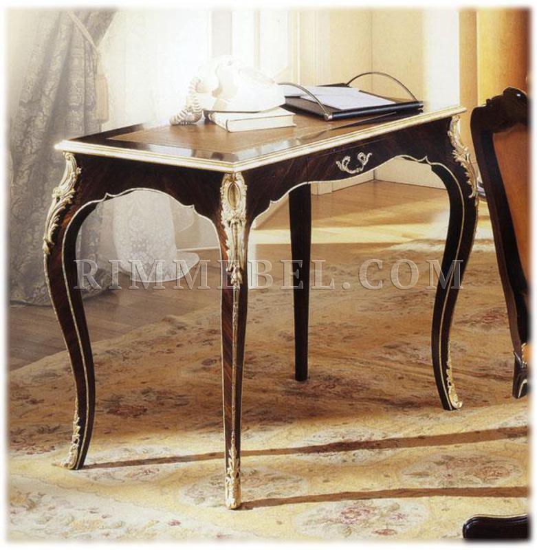 Письменный стол с 1-м ящиком. Столешница - кожа. Декорирован резьбой. Ручная работа. Возможны различные варианты отделки (красное дерево, махагон, охра, декапе и т.д.)