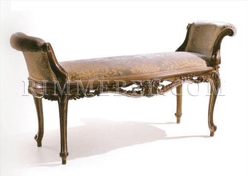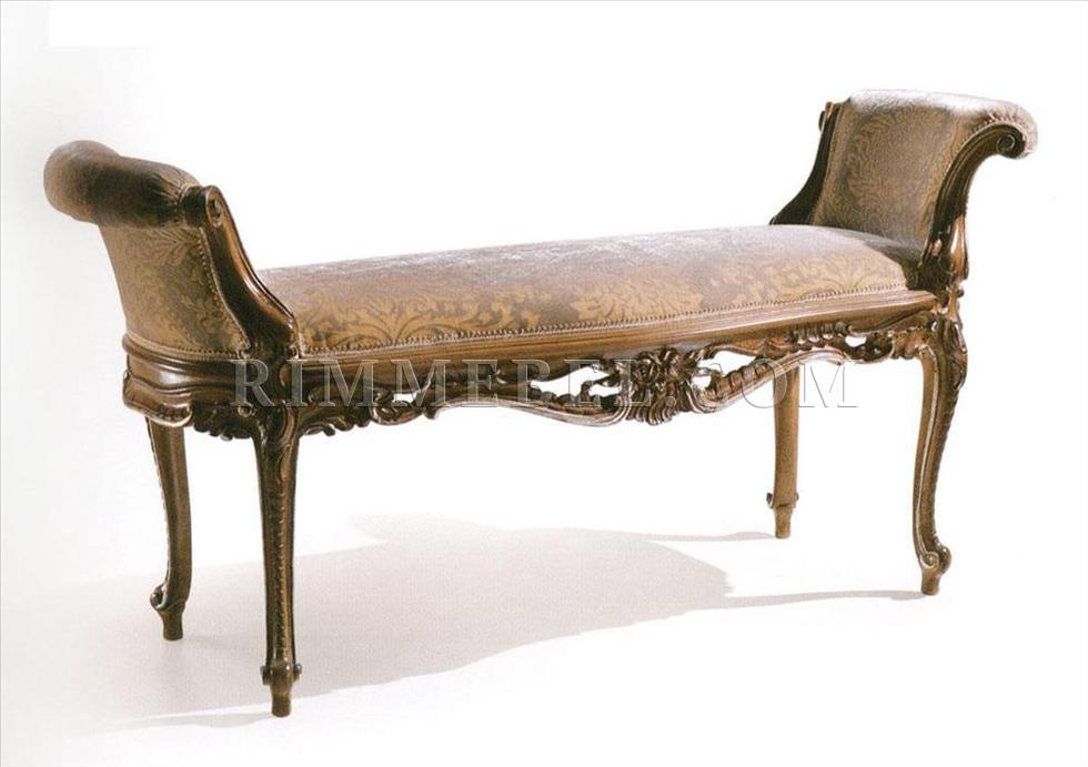 Банкетка. Декорирована резными элементами ручной работы. Наполнение - полиуретан. Возможны различные варианты обивки и отделки.
