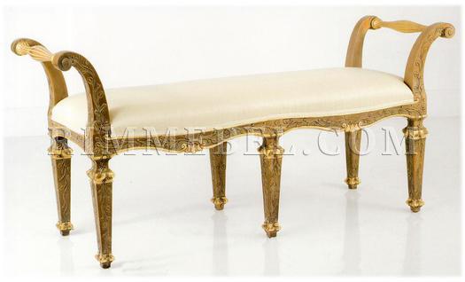 Банкетка с подлокотниками. Наполнение – полиуретан. Декорирована резьбой. Возможны различные варианты отделки. Цена указана без обивки.