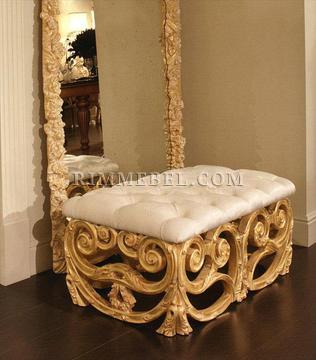 Банетка. Наполнение - полиуретан. Декорирована резными элементами. Возможны другие варианты обивки и отделки.