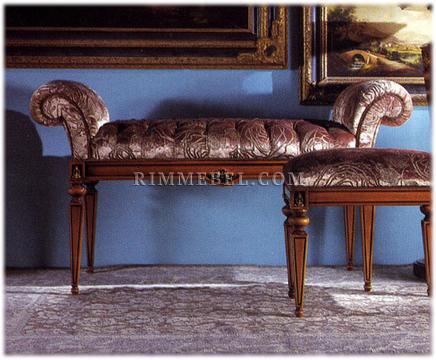 Банкетка, декорированная резьбой. Наполнение - полиуретан. Возможны другие варианты отделки и обивки, в том числе выполнение в ткани клиента