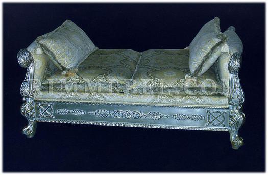 Банкетка, декорированная резьбой. Обивка - ткань, наполнение - полиуретан. Возможны другие варианты обивки