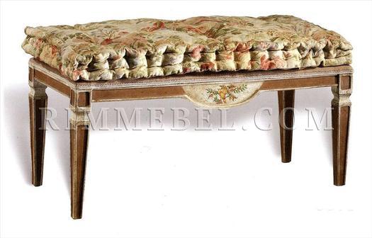 Банкетка. Наполнение - полиуретан. Роспись ручной работы с использованием темпорных красок, порошков и методов состаривания, которые использовались еще во времена флорентийского Ренессанса. Возможны другие варианты отделки и обивки.