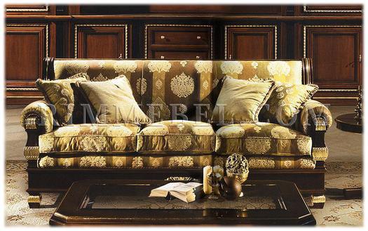 3-х местный диван. Наполнение - полиуретан. Декорирован резьбой. Ручная работа. Возможны различные варианты отделки (красное дерево, махагон, охра, декапе и т.д.) и обивки.