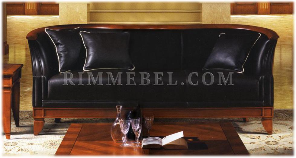 3-х местный диван, спинка расположена на одном уровне с подлокотниками. Наполнение - полиуретан. Возможны различные варианты отделки (красное дерево, махагон, охра, декапе и т.д.) и обивки.