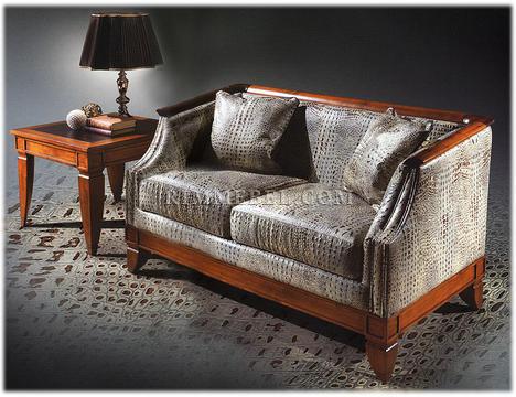 2-х местный диван, спинка расположена на одном уровне с подлокотниками. Наполнение - полиуретан. Возможны различные варианты отделки (красное дерево, махагон, охра, декапе и т.д.) и обивки.