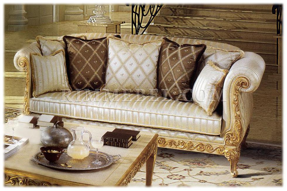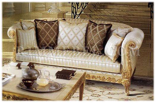 3-х местный диван, спинка расположена на одном уровне с подлокотниками. Наполнение - полиуретан. Декорирован резьбой. Ручная работа. Возможны различные варианты отделки (красное дерево, махагон, охра, декапе и т.д.) и обивки.