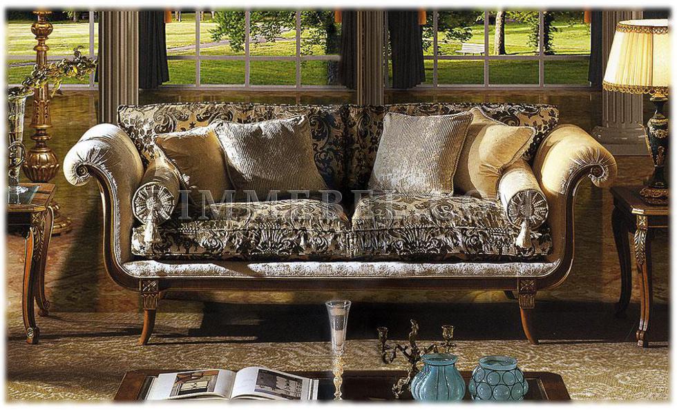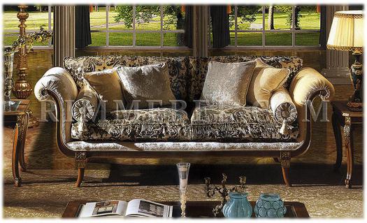 3-х местный диван. Наполнение - полиуретан. Декорирован резьбой. Ручная работа. Возможны различные варианты отделки (красное дерево, махагон, охра, декапе и т.д.) и обивки.