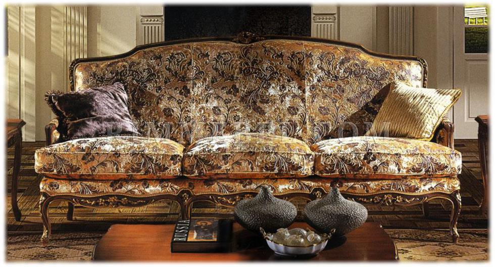 3-х местный диван, подлокотники с мягкими накладками. Наполнение - полиуретан. Декорирован резьбой. Ручная работа. Возможны различные варианты отделки (красное дерево, махагон, охра, декапе и т.д.) и обивки.