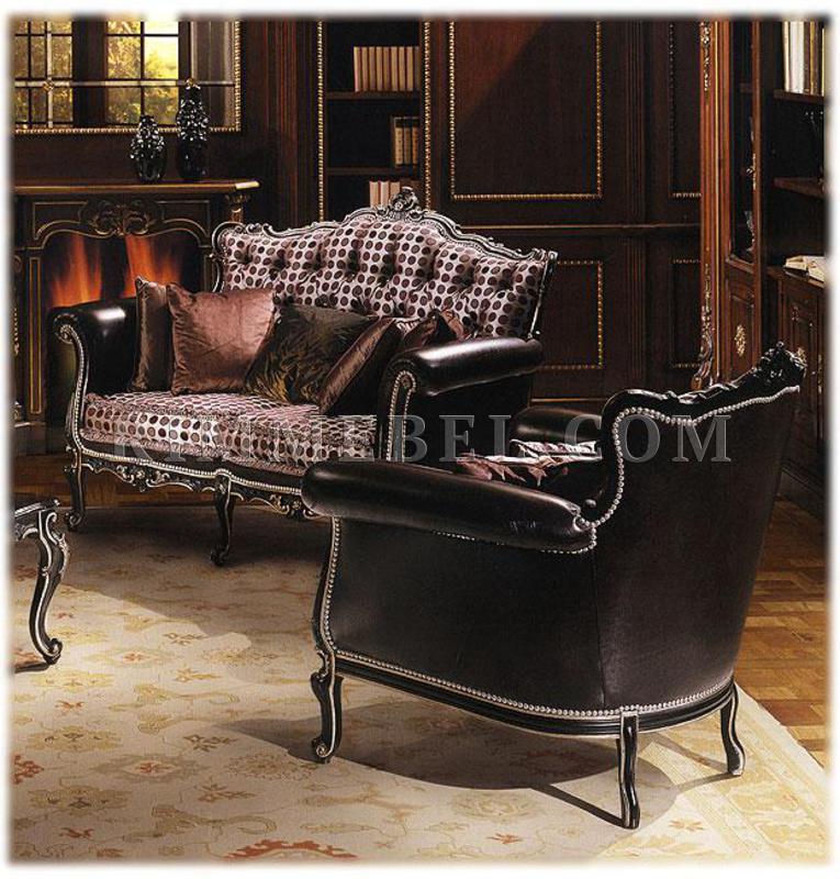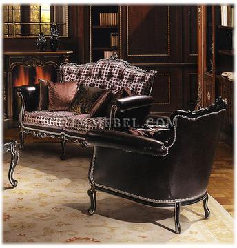 2-х местный диван. Наполнение - полиуретан. Декорирован резьбой. Ручная работа. Возможны различные варианты отделки (красное дерево, махагон, охра, декапе и т.д.) и обивки.