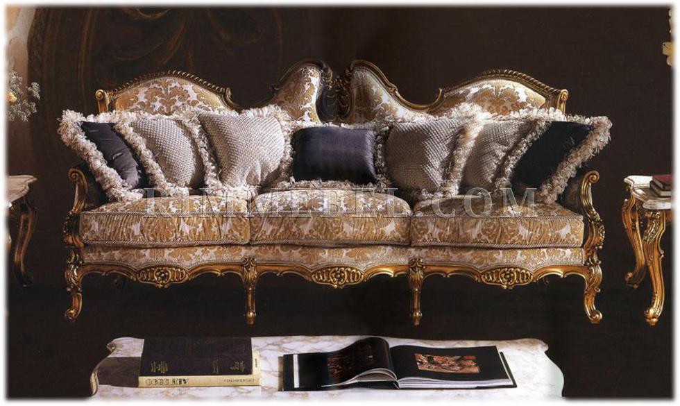 3-х местный диван c фигурной спинкой, жесткие подлокотники. Наполнение - полиуретан. Декорирован резьбой. Ручная работа. Возможны различные варианты отделки (красное дерево, махагон, охра, декапе и т.д.) и обивки.