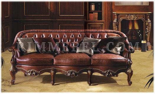 3-х местный диван, спинка плавно переходит в подлокотники. Наполнение - полиуретан. Декорирован резьбой. Ручная работа. Возможны различные варианты отделки (красное дерево, махагон, охра, декапе и т.д.) и обивки.