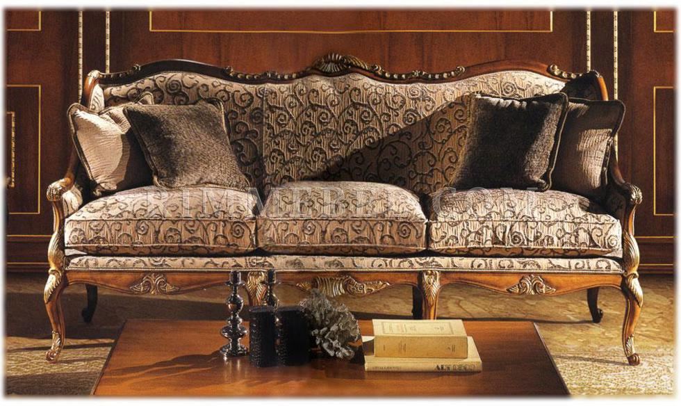 3-х местный диван, жесткие подлокотники. Наполнение - полиуретан. Декорирован резьбой. Ручная работа. Возможны различные варианты отделки (красное дерево, махагон, охра, декапе и т.д.) и обивки.