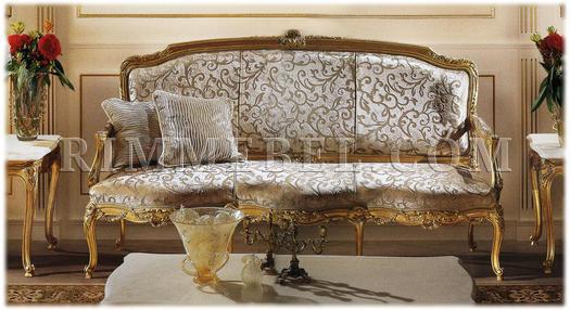 3-х местный диван, подлокотники с мягкими накладками. Наполнение - полиуретан. Декорирован резьбой. Ручная работа. Возможны различные варианты отделки (красное дерево, махагон, охра, декапе и т.д.) и обивки.