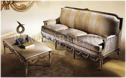 3-х местный диван, подлокотники с мягкими накладками. Наполнение - полиуретан. Декорирован резьбой. Ручная работа. Возможны различные варианты отделки (красное дерево, махагон, охра, декапе и т.д.) и обивки.
