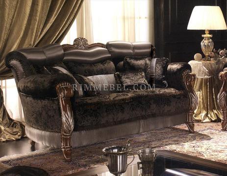 Диван 2-х местный, декорированный ручной резьбой. Структура - бук, наполнение - полиуретан. Возможны другие варианты обивки и отделки. Возможна декорация стразами Сваровски. Декоративные подушки включены в стоимость