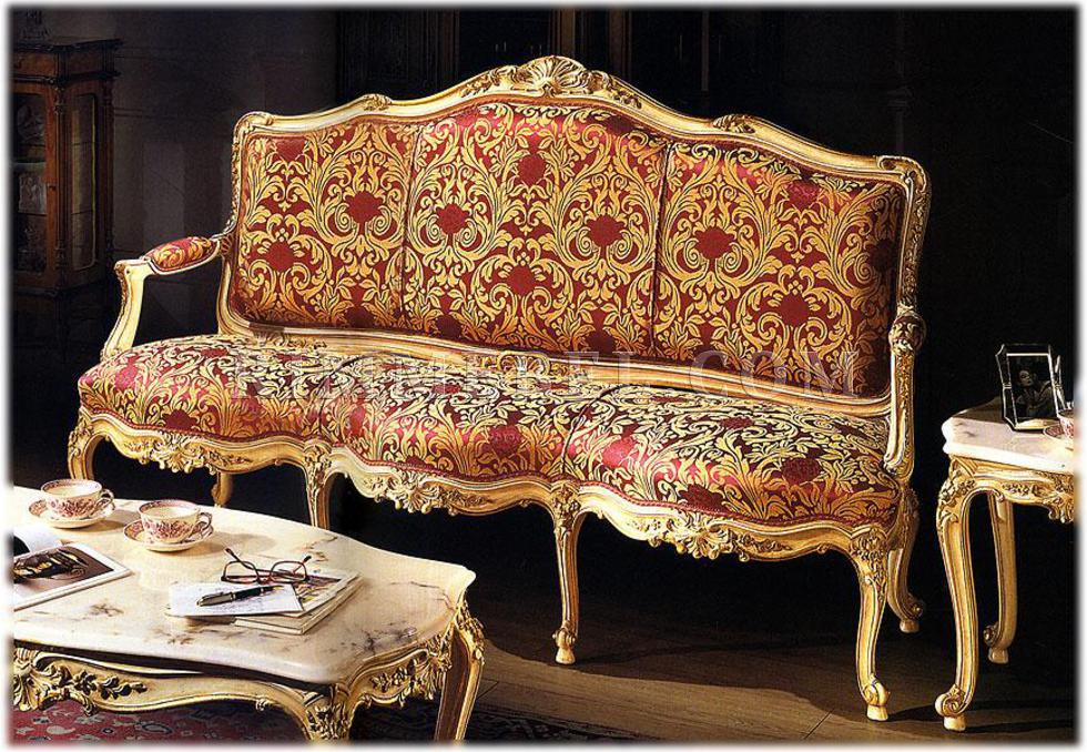 3-х местный диван, подлокотники с мягкими накладками, декорирован резными элементами. Наполнение - полиуретан. Возможны другие варианты отделки и обивки.
