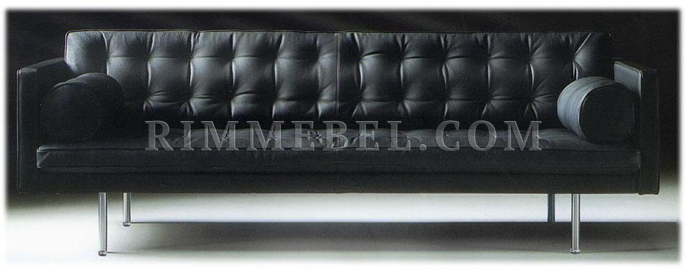 Диван 3-х местный на высоких ножках. Наполнение - полиуретан, подушки сиденья - пух. Возможны другие варианты обивки(кожа, ткань).