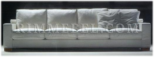 Диван 4-х местный. Наполнение - полиуретан в ткани, подушки сидения - пух. Съёмный чехол. Возможны другие варианты обивки(кожа, ткань) и отделки ножек(орех, бук, бук крашенный под орех, бук крашенный под вишню, клен, а также в металле).