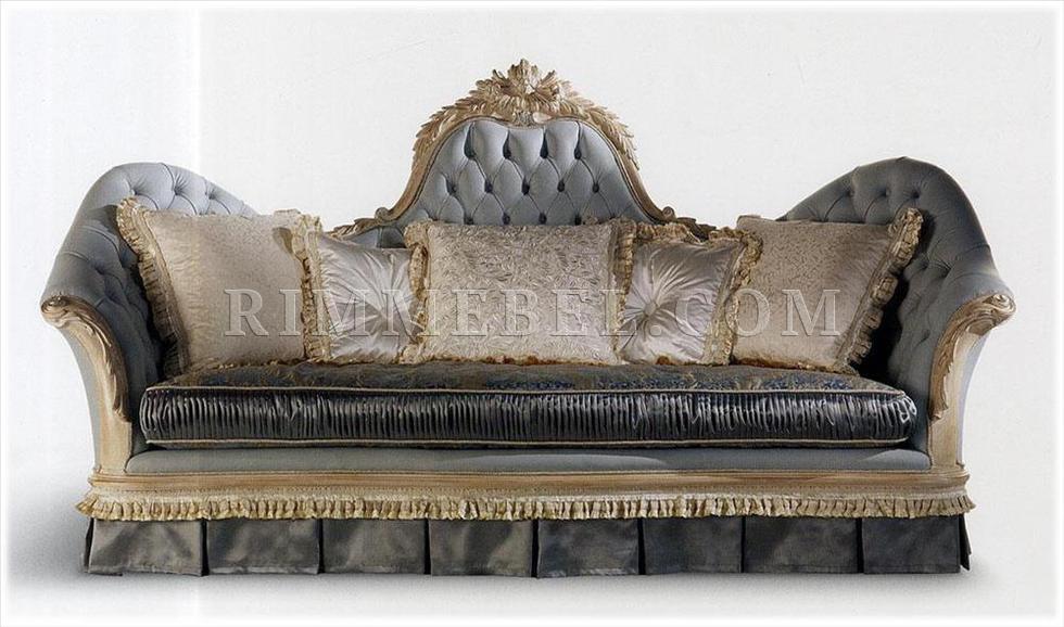 3-х местный диван с фигурной спинкой и ламбрекеном. Наполнение - полиуретан. Декорирован резьбой ручной работы. Возможны другие варианты обивки и отделки.