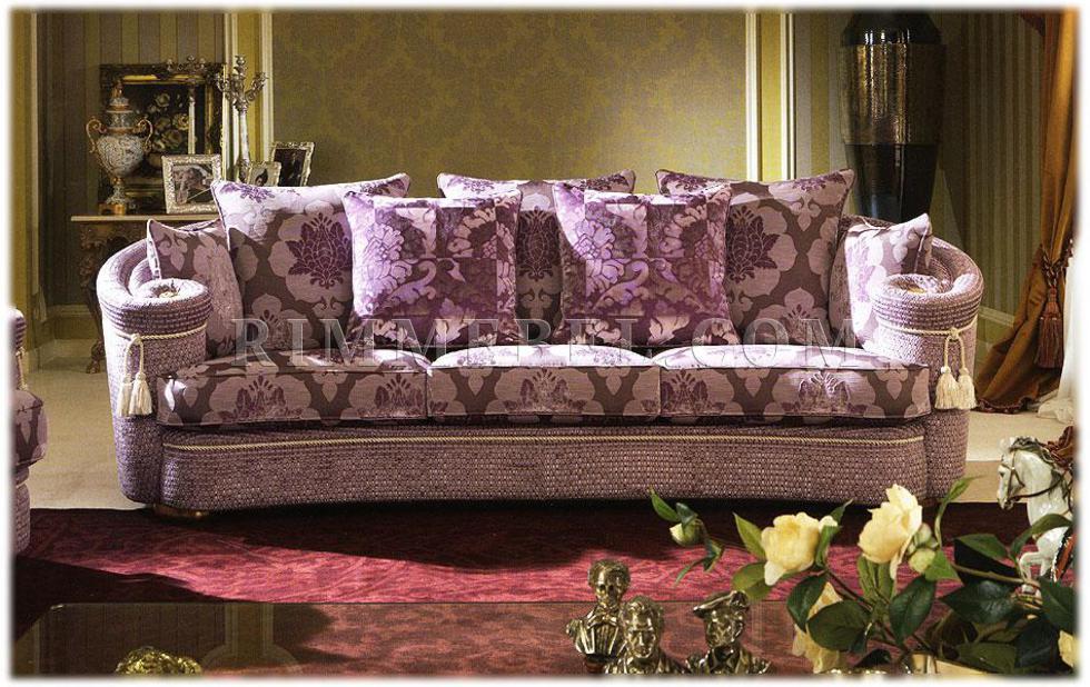 3-х местный диван с закругленной спинкой плавно переходящей в подлокотники. Золоченые ножки. Наполнение - полиуретан. Декор ручной работы. Возможны другие цветовые варианты обивки.