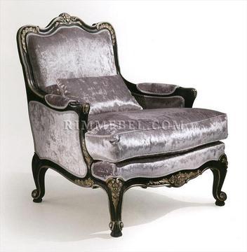 Кресло, подлокотники с мягкими накладками. Декорировано резными элементами ручной работы. Наполнение - полиуретан. Возможны различные варианты обивки и отделки.