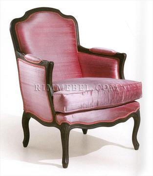 Кресло, подлокотники с мягкими накладками. Декорировано резными элементами ручной работы. Наполнение - полиуретан. Возможны различные варианты обивки и отделки.