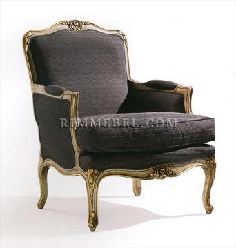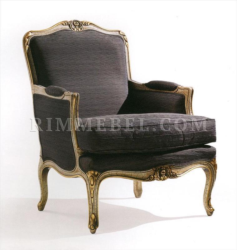 Кресло, подлокотники с мягкими накладками. Декорировано резными элементами ручной работы. Наполнение - полиуретан. Возможны различные варианты обивки и отделки.